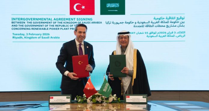 Cumhurbaşkanı Recep Tayyip Erdoğan’ın Suudi Arabistan ziyaretinde, Enerji ve Tabii Kaynaklar Bakanı Alparslan Bayraktar ile Suudi Arabistan Enerji Bakanı Abdulaziz bin Selman Al-Suud arasında yenilenebilir enerji santrali projelerine ilişkin hükümetler arası anlaşma imzalandı.